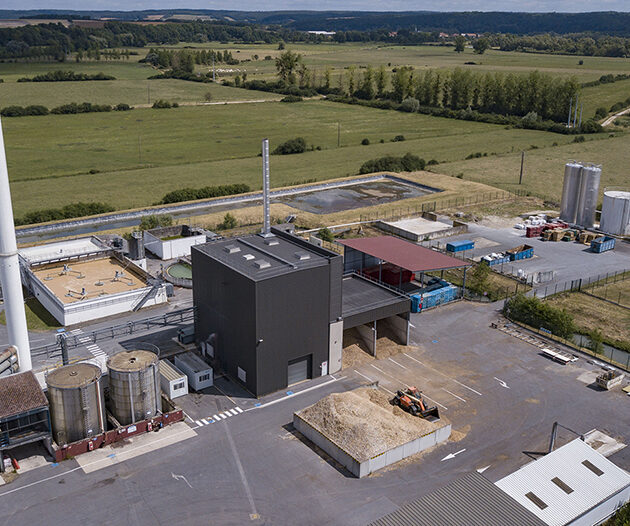 - La chaufferie biomasse mise en place sur le site de Challerange, d’une puissance de 7 MW, produit 10 tonnes de vapeur par heure à 15 bars de pression. Elle est équipée d’un multi cyclone et d’un filtre à manche, qui limite les émissions de poussières (inférieures à 30 mg/Nm3 d’air à 11% d’O2), d’un économiseur de fumées et de 2 silos de stockage de bois d’un volume utile total maximum de 500 m3.